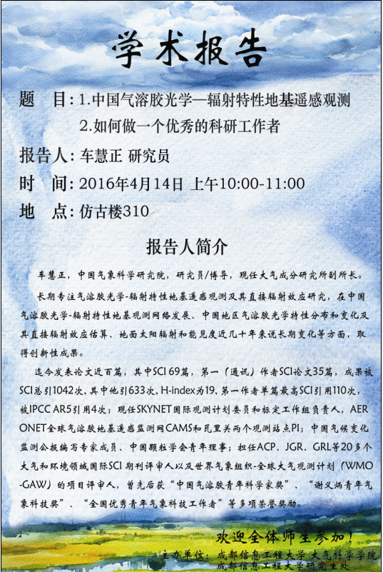 来源:大气科学学院 作者:胡培  日期:2016-04-12  审核:新闻中心  点击: