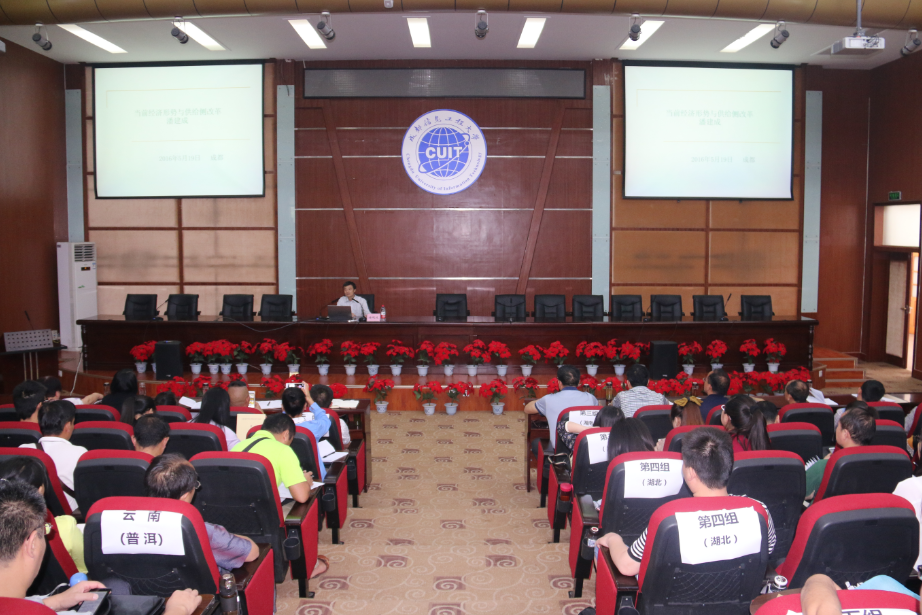 【本网讯】5月19日上午,国家统计局中国经济景气监测中心副主任、高级统计师潘建成应邀到龙泉校区作了题为“当前的经济形势与供给侧改革”的学术讲座。全国统计系统专业知识基础培训班第45期学员、云南普洱市统计系统骨干培训班学员及统计学院部分师生聆听了讲座。讲座由学校副校长于世祥主持。