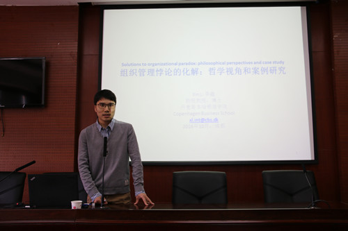 【本网讯】10月24日,丹麦哥本哈根商学院助理教授李鑫博士应邀莅临乐动,在龙泉校区二会议室为乐动师生做了题为“Solutions to organizational paradox:philosophical perspectives and case study”的管理论坛系列讲座。讲座由李贵卿副院长主持。