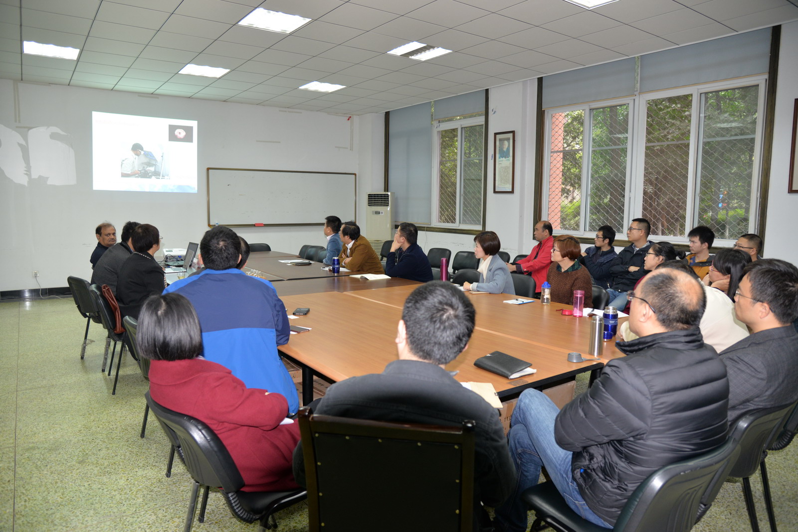 Kesavadas教授介绍了伊利诺伊大学香槟分校的历史、医疗康复中心取得的主要成就,并从生物信息传感、建模、仿真等方面详细地介绍了研究团队利用虚拟现实技术在机器人手术和医疗教育培训方面的创新工作。报告内容引起与会教师的极大兴趣,大家就其中的前沿问题进行了热烈的讨论,希望在教育和科研方面开展更深入的合作和交流。