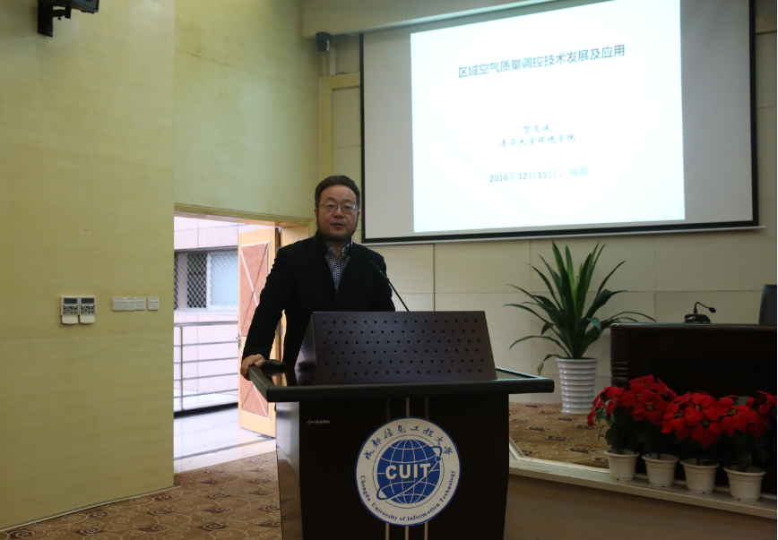 【本网讯】12月15日下午,在乐动航空港校区国际会议厅举行了一场由中国工程院院士贺克斌给全校师生带来的主题为“区域空气质量调控技术体系的发展与应用”专题报告。校长助理、大气科学学院院长范广洲,资源环境学院院长叶芝祥、副院长刘盛余及徐成华,成都市科学技术顾问团办公室相关人员,学校科技处、宣传统战部相关工作人员及广大教师、学生参加了此次报告。报告由范广洲主持。