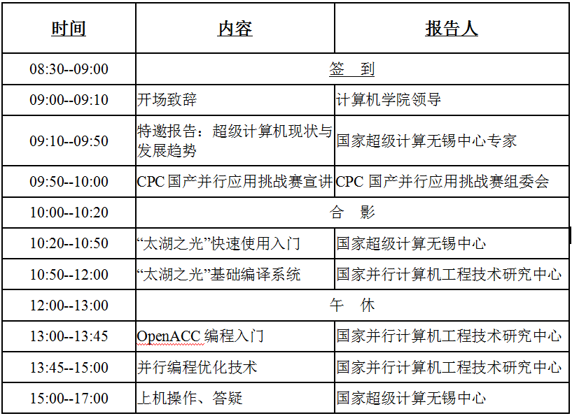 【本网讯】由教育部高等学校计算机类专业教学指导委员会指导、中国计算机学会主办的第一届国产CPU并行应用挑战赛(CPC)即将开赛。2017年6月19日,由计算机学院承办的西部赛区启用仪式将在乐动在线登录信息楼第一会议室召开,届时将由国家超级计算无锡中心与国家并行计算机工程技术研究中心专家为大家带来题为“超级计算机现状与发展趋势”的报告。为了方便参赛队员更好地了解比赛规则,提前熟悉比赛平台,计算机学院特别邀请CPC组委会在乐动6309教室为所有参赛队员及指导老师进行一次备赛培训,请已经报名参赛和意向报名参赛的同学和指导老师准时参加,欢迎全校师生踊跃报名参加。