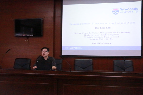 【本网讯】6月28日下午,英国伯明翰大学商学院创业与区域经济系研究主任Dr.Eric.Yipeng Liu做客乐动管理论坛,在龙泉校区1213会议室为乐动师生带来题为《Emerging-market firms mergers and acquisitions》的学术讲座。管理学院百余名师生聆听了学术报告。报告会由管理学院副院长李贵卿主持。