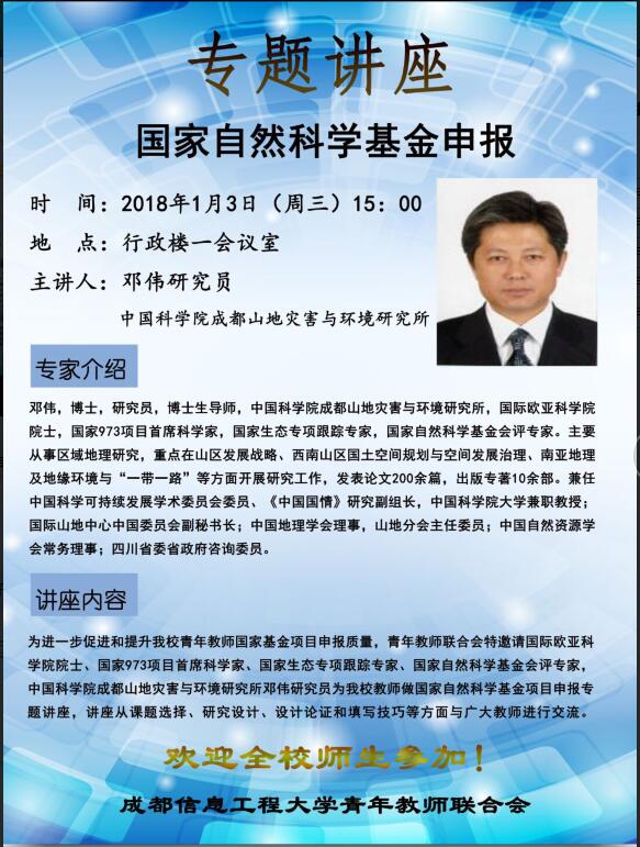 上一条:中国科学院成都山地灾害与环境研究所邓伟研究员应邀来乐动作国家自然科学基金申报专题讲座