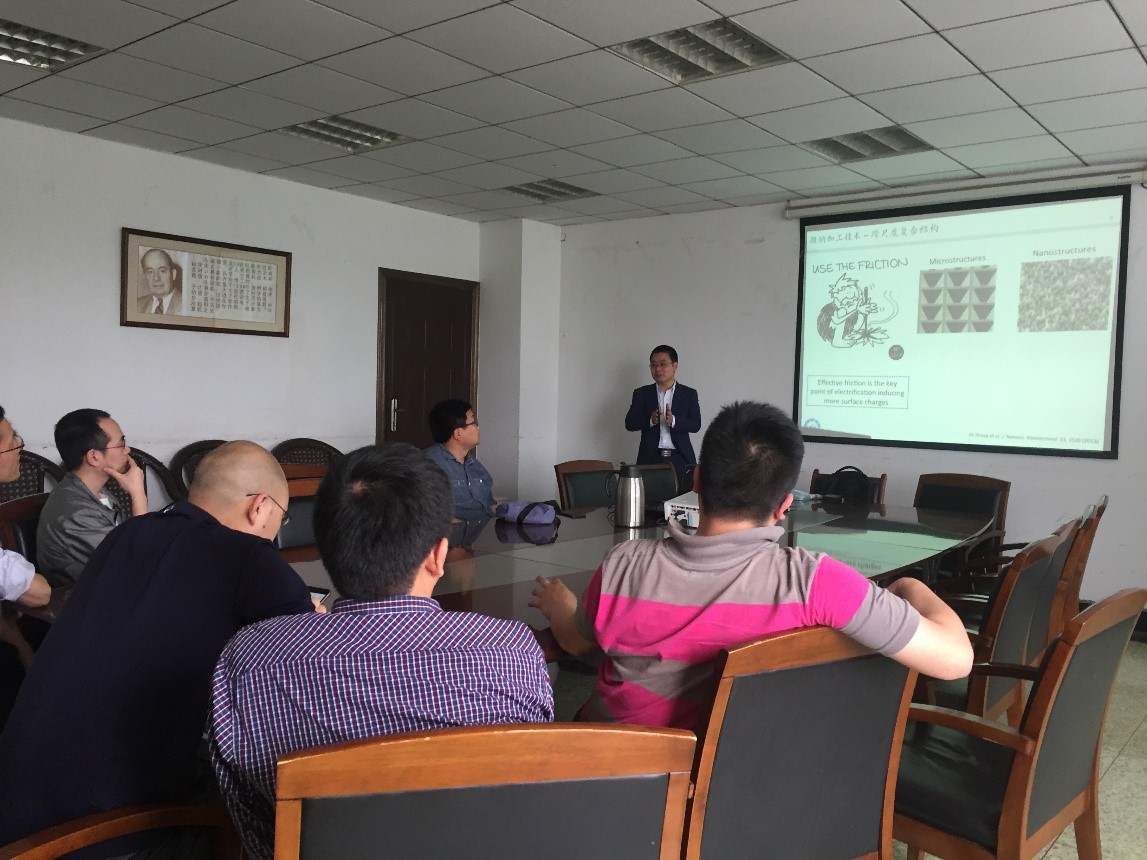 张晓升对微纳复合制造、新型微能源采集、自供能柔性微系统等领域进行了全面的介绍,分析了当前学科发展的现状及趋势。他着重介绍了自己团队所取得的成果,并现场展示了一系列利用微能源采集技术实现的小器件,包括使用蚕丝蛋白制作的摩擦生电薄膜、纤维素制作的自生电可穿戴衣物材料以及使用石墨和纸张制作的电供能系统等。