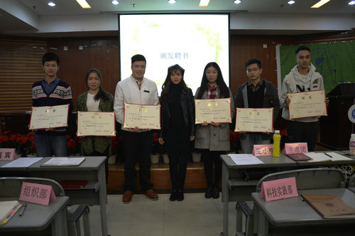 会议上,王小宁对这近一个月以来分团委、学生会的工作进行了总结,并给予了极大的肯定,对于优秀的部门,也给予了一定的表彰。而后,黄建豪就“为妈妈奔跑”活动致辞,表示取得的成绩与同学们的支持和努力分不开,并为参加活动的优秀志愿者们颁发了志愿者证书。会议中,王小宁还为分团委学生会主席团成员,正副部长们颁发了聘书。聘书颁发之后,播放了一部以“跟着环环去冒险” 为主题的素质拓展活动纪录片《跟着环环去冒险》的预告片,让在场的分团委学生会成员们又重温了那段美好的时光。