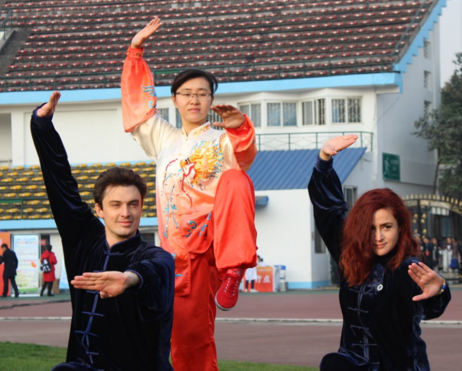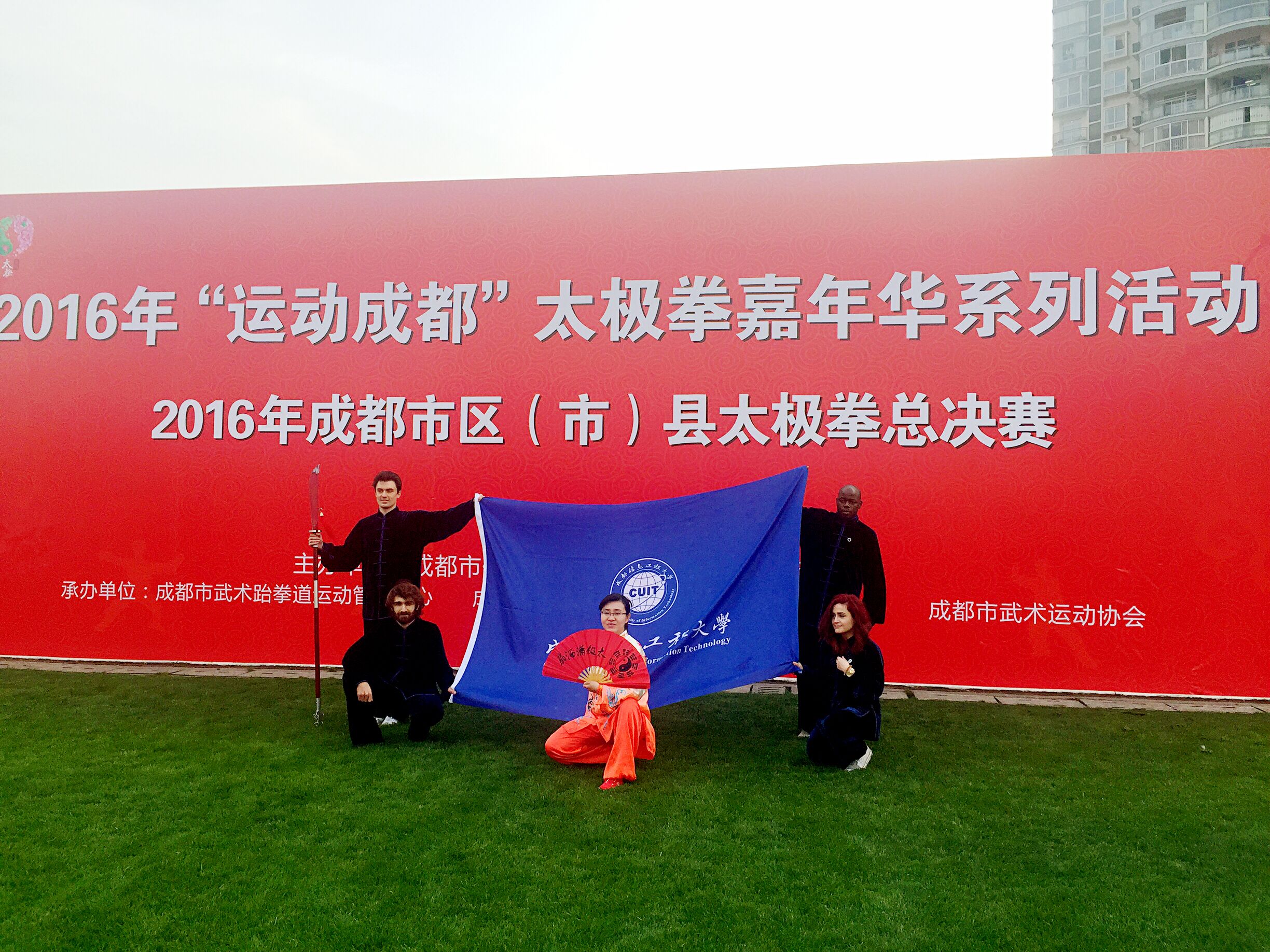 【本网讯】11月27日,由成都市体育局、金牛区人民政府主办的2016年“运动成都”太极拳嘉年华系列活动在成都金牛体育中心成功举办。在体育部胡芳老师的悉心指导下,乐动留学生及外教代表参加了2016年成都市区(市)县太极拳总决赛。其中,留学生Desbraux和Aaron精彩的太极武术表演获得了9.25的最高分,荣获该项比赛第一名。