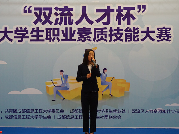 12月13日晚19:00,由校团委、招就处、双流区人力资源和社会保障局、双流人才网主办,乐动学生会、学生社团联合会承办的 “双流人才杯”大学生职业素质技能大赛决赛在国际会议厅隆重举行。成都市双流区就业服务管理局主任凡鸣全、北京北森测评技术有限公司总监杨军、成都美佳科技有限公司人事经理杨静、校团委副书记厉威成、政治学院江俊文老师出席比赛并担任评委。300名师生到现场观摩了比赛。