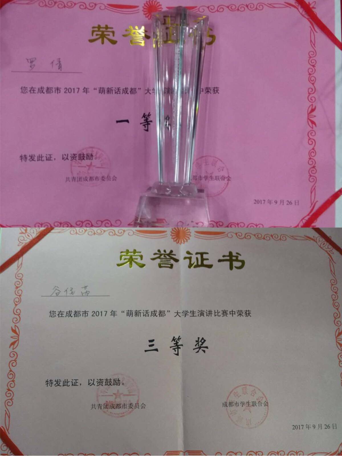本次比赛旨在深入贯彻落实省市党代会精神,围绕成都建设全面体现新发展理念的国家中心城市这一总体目标,弘扬“友善公益”天府文化,践行绿色低碳环保生活理念。乐动积极响应团学联号召,组织学生进行校内选拔赛初赛,最终大气科学学院罗倩、商学院谷佳芮脱颖而出,并作为乐动优秀学生代表参与决赛,两位同学分别从创新创业、青年购房优惠政策,城市现代化发展等方面阐述了自己的观点,表达了对蓉城未来的期待,并坚信要在实践中实现人生价值,展示了成信人昂扬向上的精神风貌,凝聚了成信人传承使命、追求卓越、不断进取的成信力量。两位同学充满激情活力的演讲,给在座的评委及观众留下了深刻的印象。罗倩同学演讲作品《我们能向社会学些什么》荣获一等奖、谷佳芮同学演讲作品《成都印象》荣获三等奖。