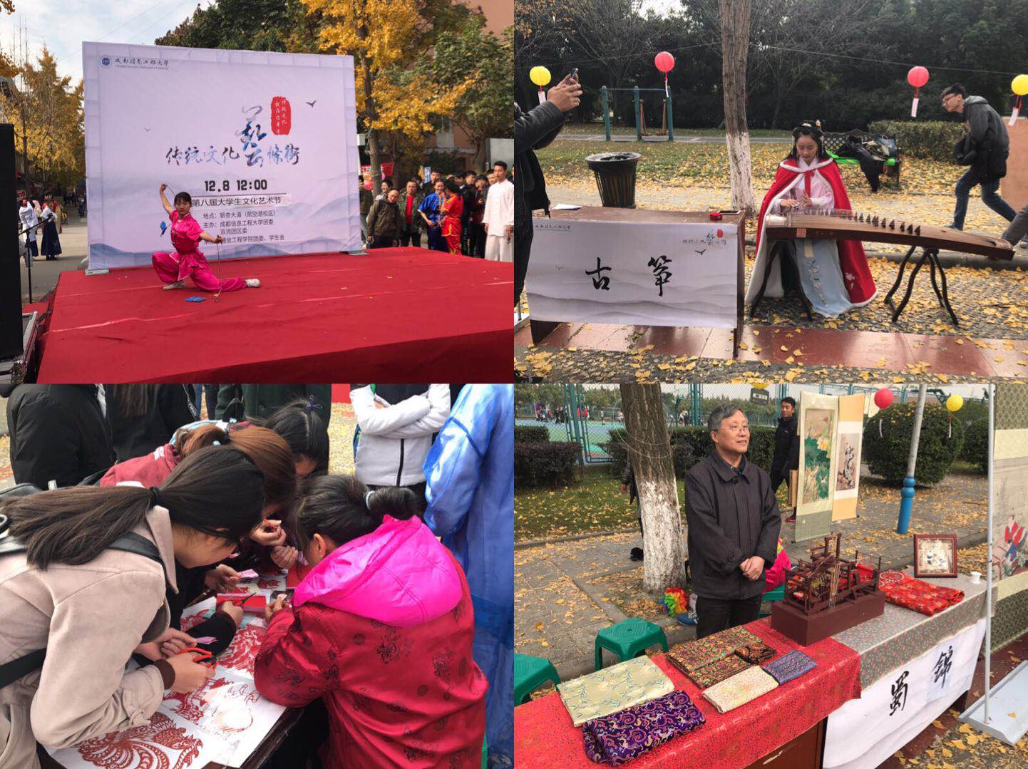 【本网讯】12月8日中午,第八届大学生文化艺术节传统文化“艺”条街活动在乐动航空港校区银杏大道举行。本次活动由学校团委、双流团区委主办,通信工程学院承办。校团委负责人,部分学院院长、总支书记(副书记)、团委书记,学校部分教职工与近2000名成信学子参加了活动。