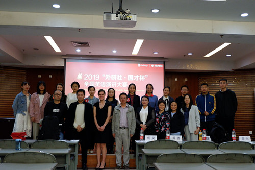 【本网讯】2019"外研社·国才杯"全国英语演讲大赛(乐动在线登录初赛)于2019年10月9日晚19:00在学校航空港校区学术报告厅顺利举行。本次比赛由外语教学与研究出版社主办,由乐动教务处和外国语学院承办,外语俱乐部协办。外国语学院党总支书记杨昊、院长黄驰、副院长卢婕作为嘉宾出席大赛,副院长周杰、外国语学院教师吴玉华、邓圆、吴倩、外教Wilbur和Ashley担任此次大赛评委。