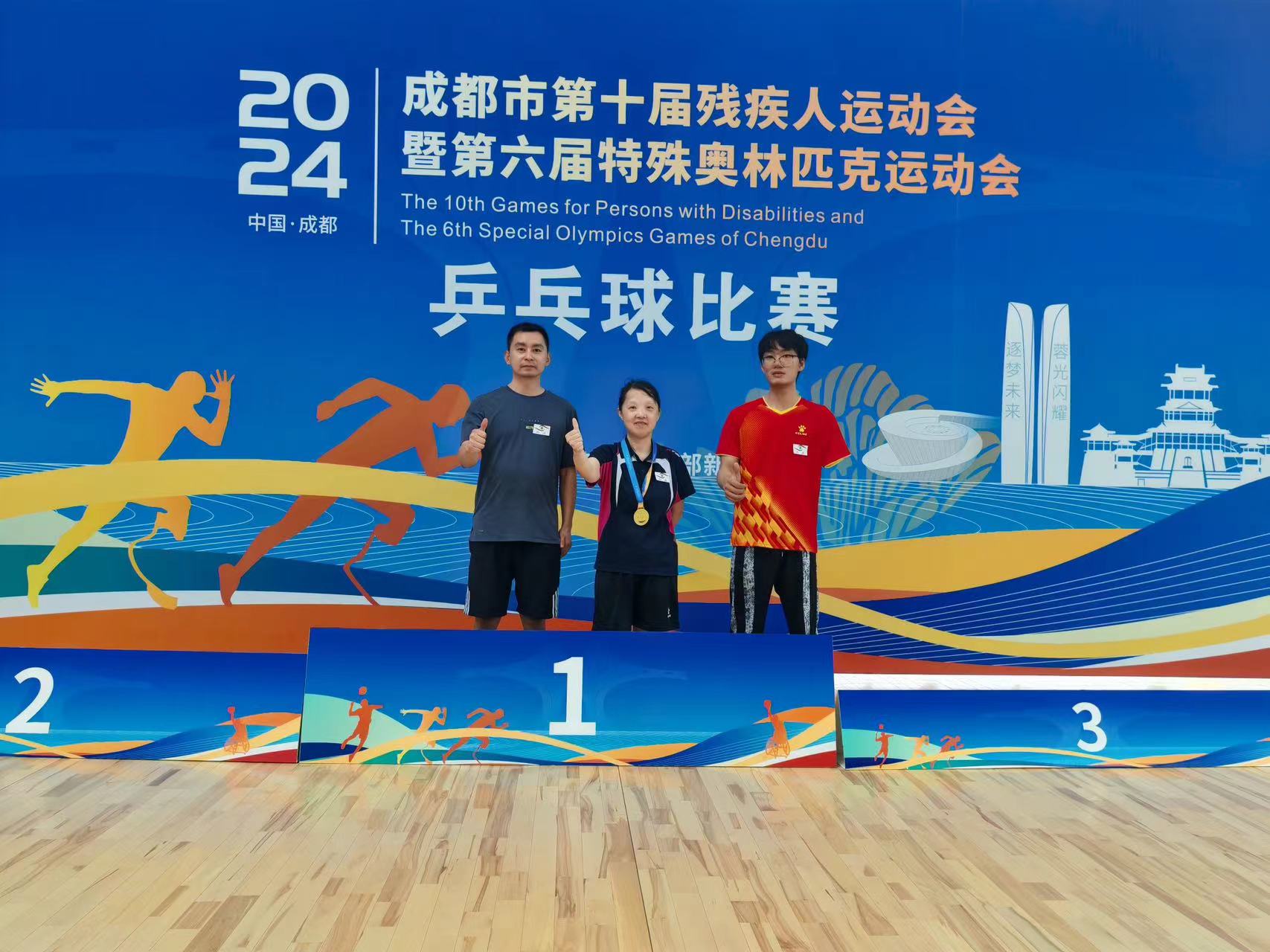 【本网讯】8月25日上午,在备受瞩目的成都市第十届残疾人运动会中,乐动文化艺术学院田晓膺教授在成都市第十届残疾人运动会上,凭借卓越的技术与不屈的意志成功摘取了TT8级女子乒乓球单打项目的桂冠,为学校赢得了荣誉。
