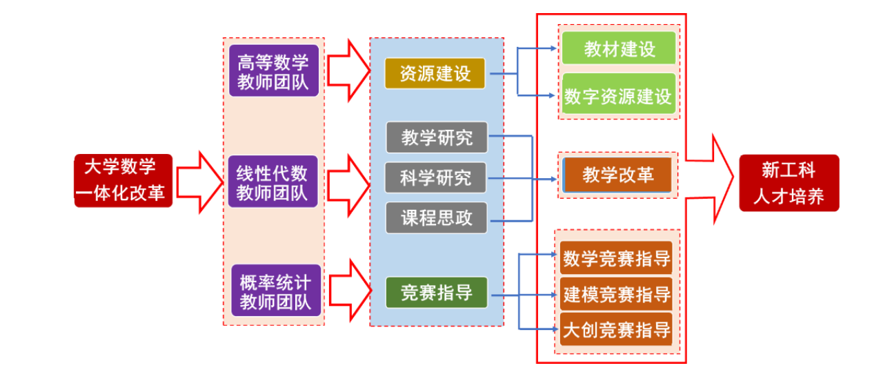 1.统筹规划“双万计划”教师资源,构建大学数学团队建设体系,着力推行教研教改与教学竞赛双线并进举措,提高团队整体水平。