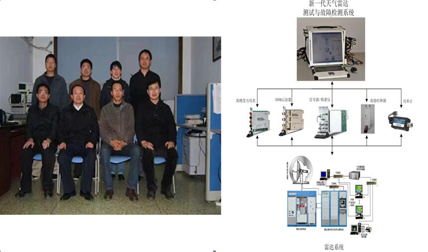 图3早期团队骨干成员(左)天气雷达测试与故障检测平台结构(右)